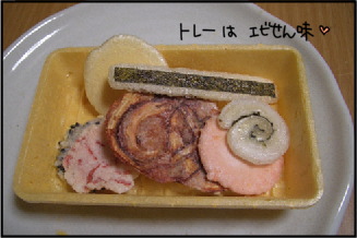 真ん中の烏賊のせんべいが気に入った!あと海老セットの海老も! (って思ってたら、そればっかり入ったセットもあった)