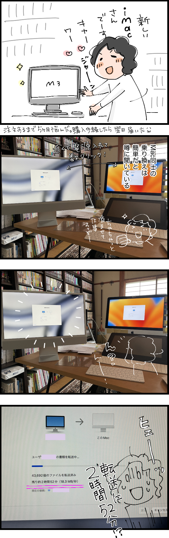 Mac→Macはしたことがないのですが、最近は慣れないことにすぐ抵抗感わいて困ります。